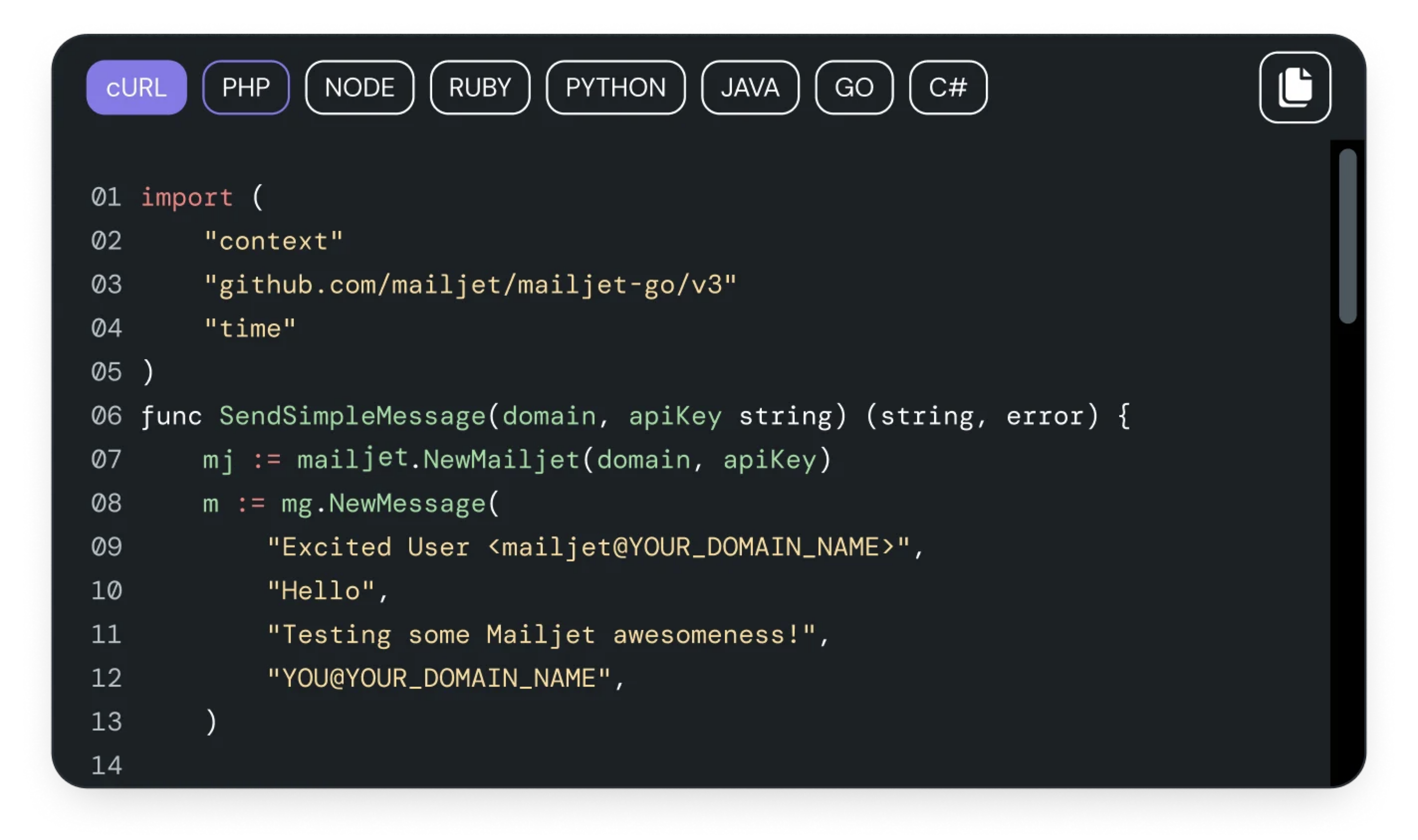 Mailjet APIConnect with your ideal customer, anywhere.Sign UpEMAIL APIAll the APIs you need for sending email.AboutSign upCONTENT APIAPIs to help you with content for your email.AboutSign upSMTP RELAYSend emails easily without a lot of integration effort on your side.AboutSign upAll the email tools you need to hit the inbox.Email APIAll the APIs for sending Email.Learn MoreContent APIAPIs to help you with content for your email.Learn MoreSMTP RelaySend emails easily without a lot of integration effort on your side.Learn More